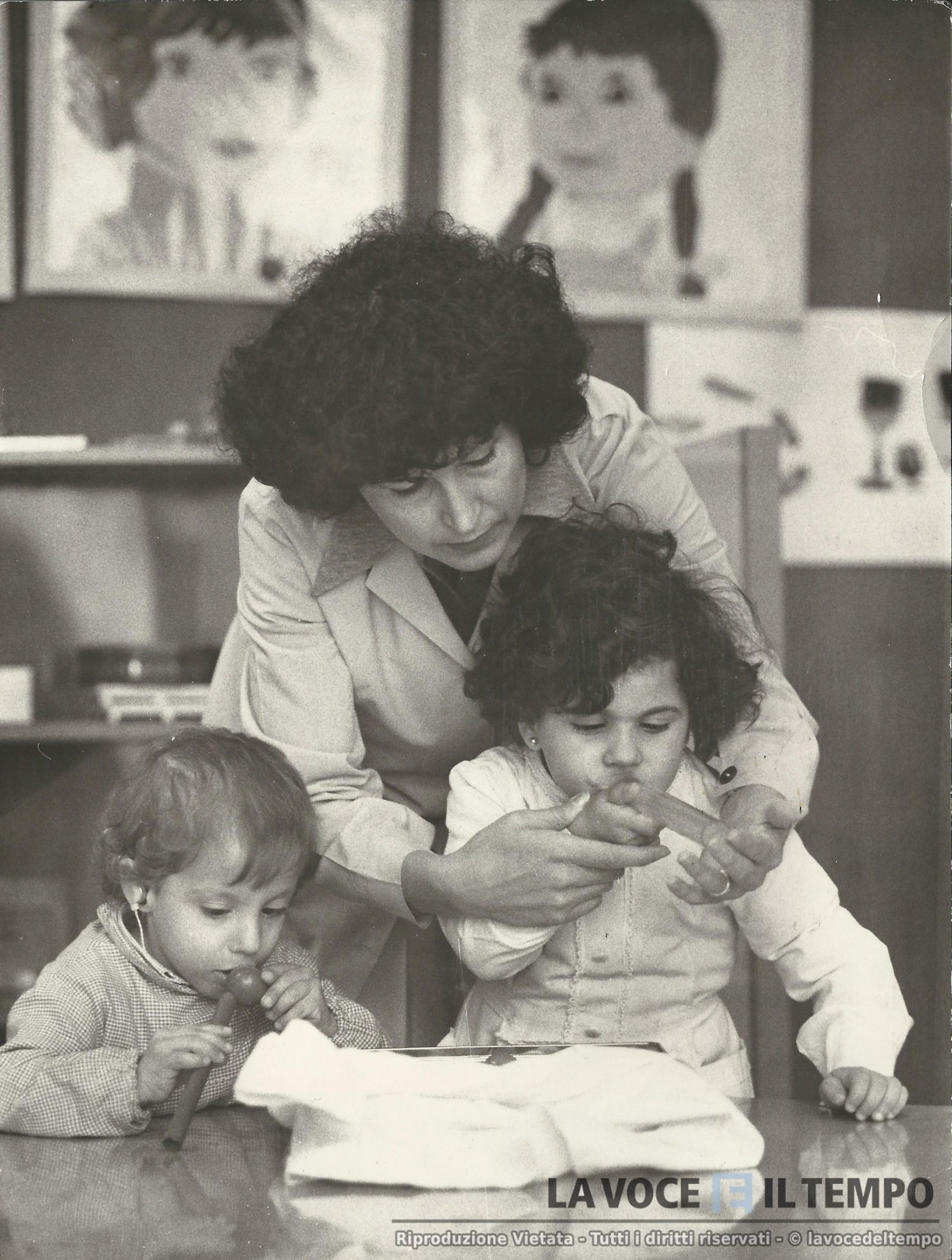 Una maestra aiuta i bambini ad imparare giocando
