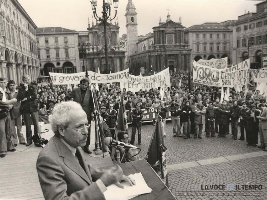 Manifestazione in piazza san Carlo per il rapimento di Moro e la strage di via Fani