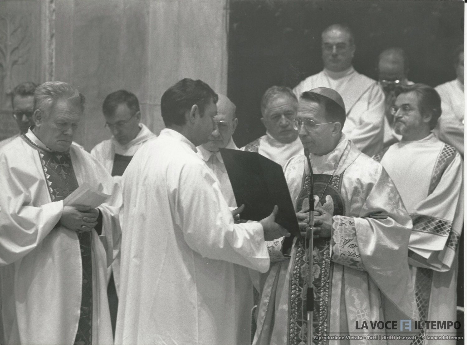 messa celebrata dal Cardinale Giovanni Saldarini accompagnato da altri preti al Sinodo torinese