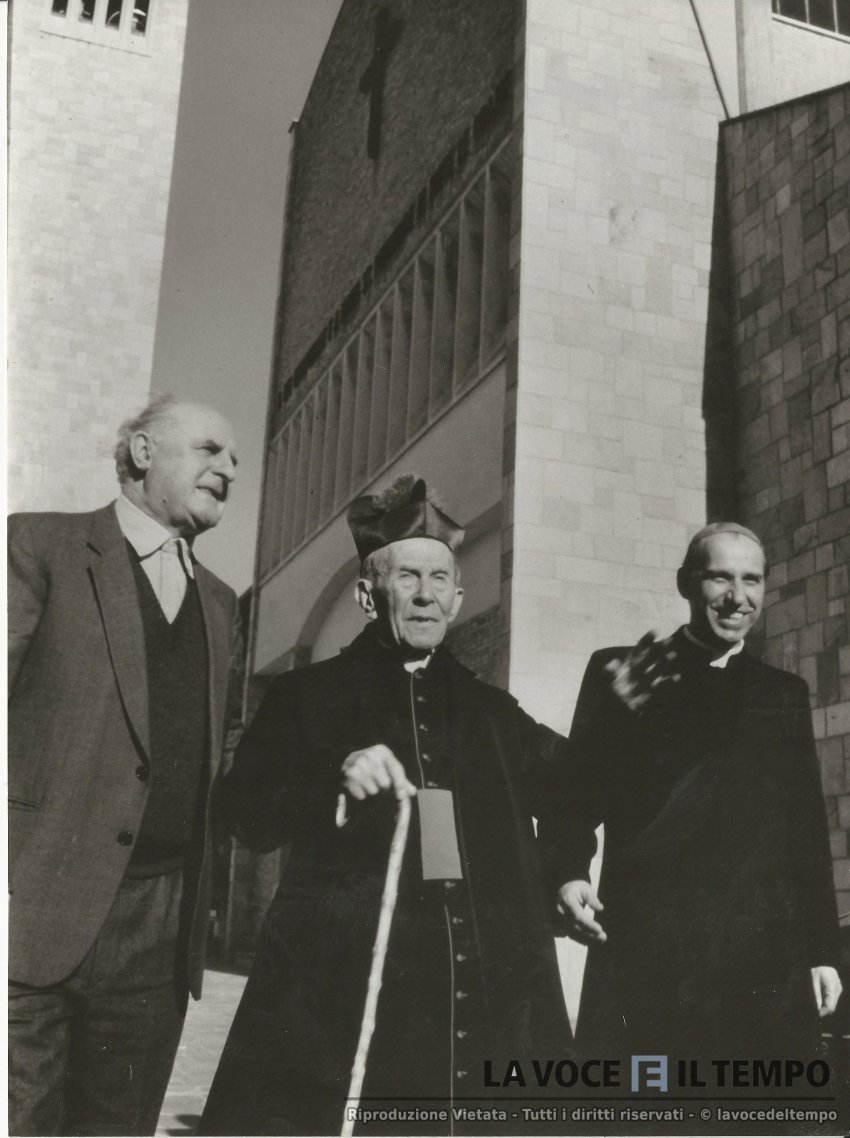 Il Cardinale Arcivescovo con il parroco e mons. Giuseppe Garneri all'inaugurazione della chiesa Santa Famiglia i Nazaret