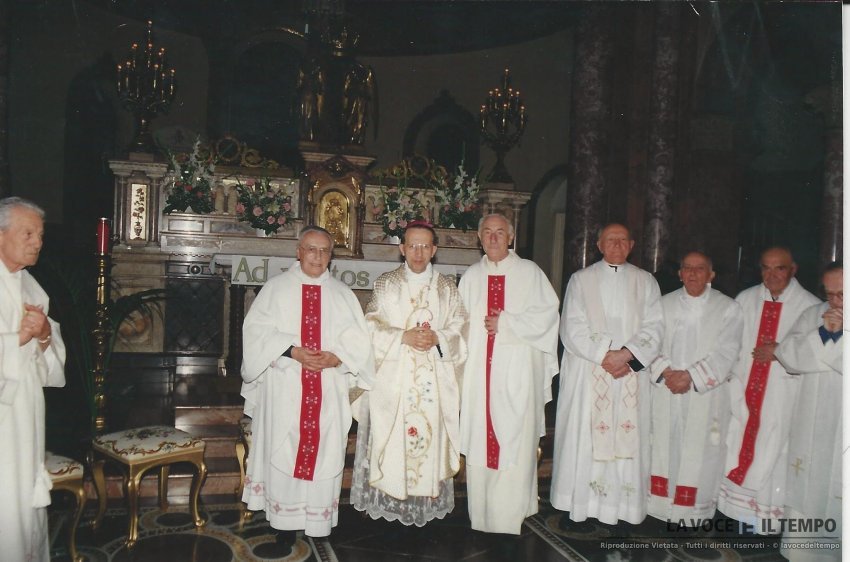 Monsignor Micchiardi insieme a don Carlo Vallaro e ad altri preti