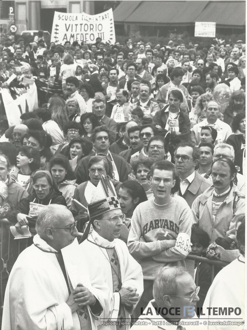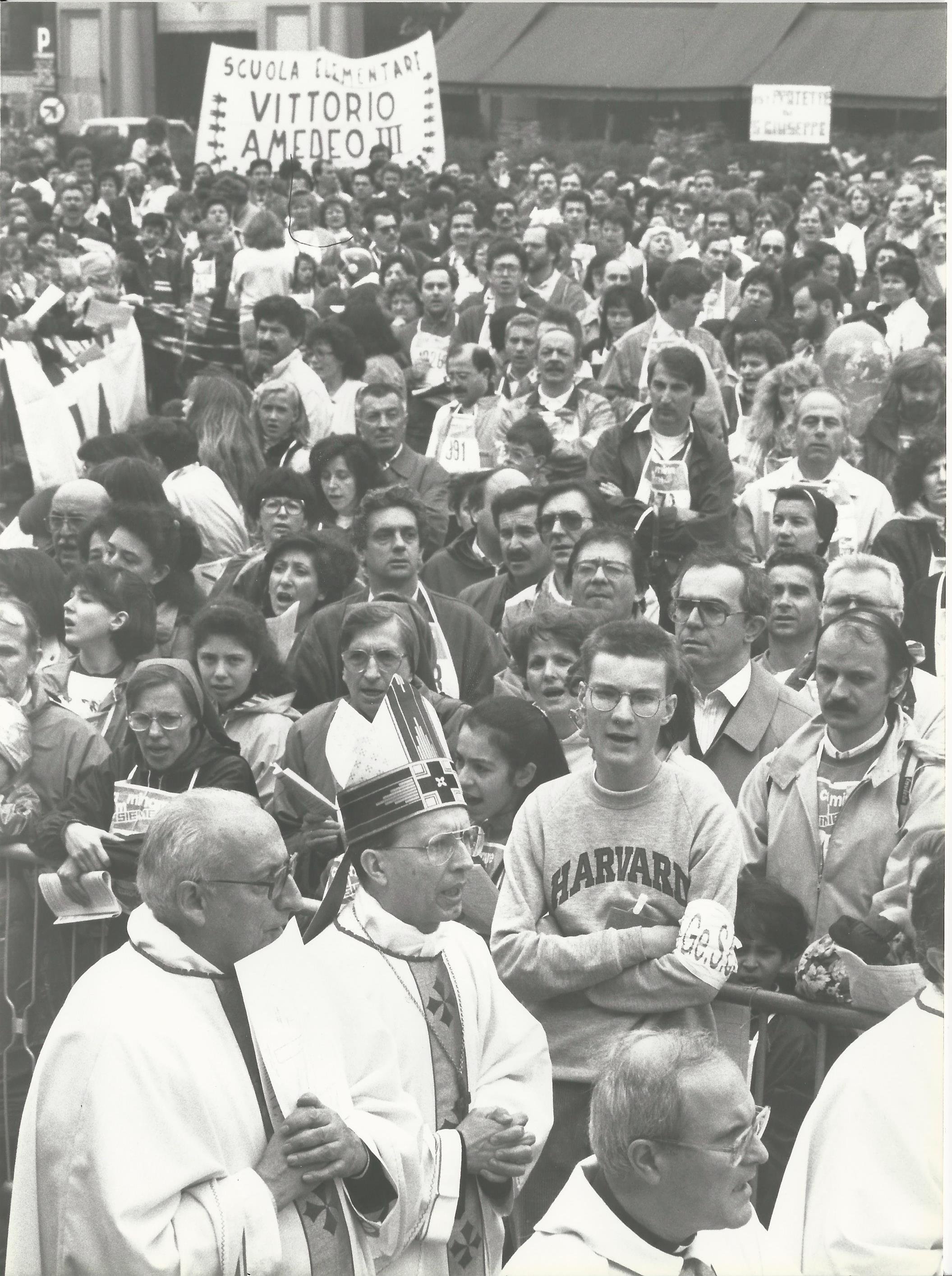 Monsignor Pier Giorgio Micchiardi tra la folla in piazza San Carlo a Torino
