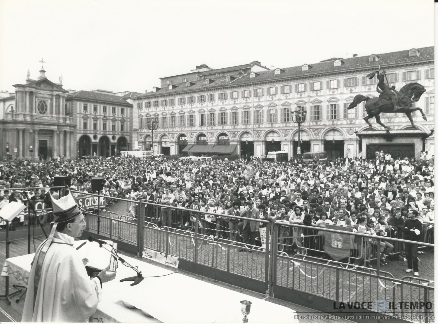 Monsignor Pier Giorgio Micchiardi celebra la messa in piazza San Carlo a Torino
