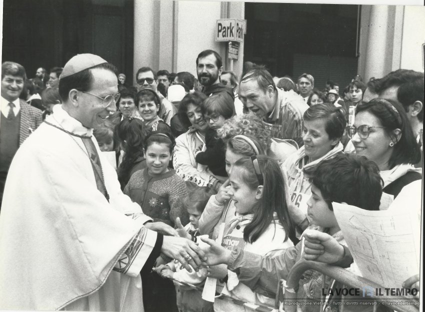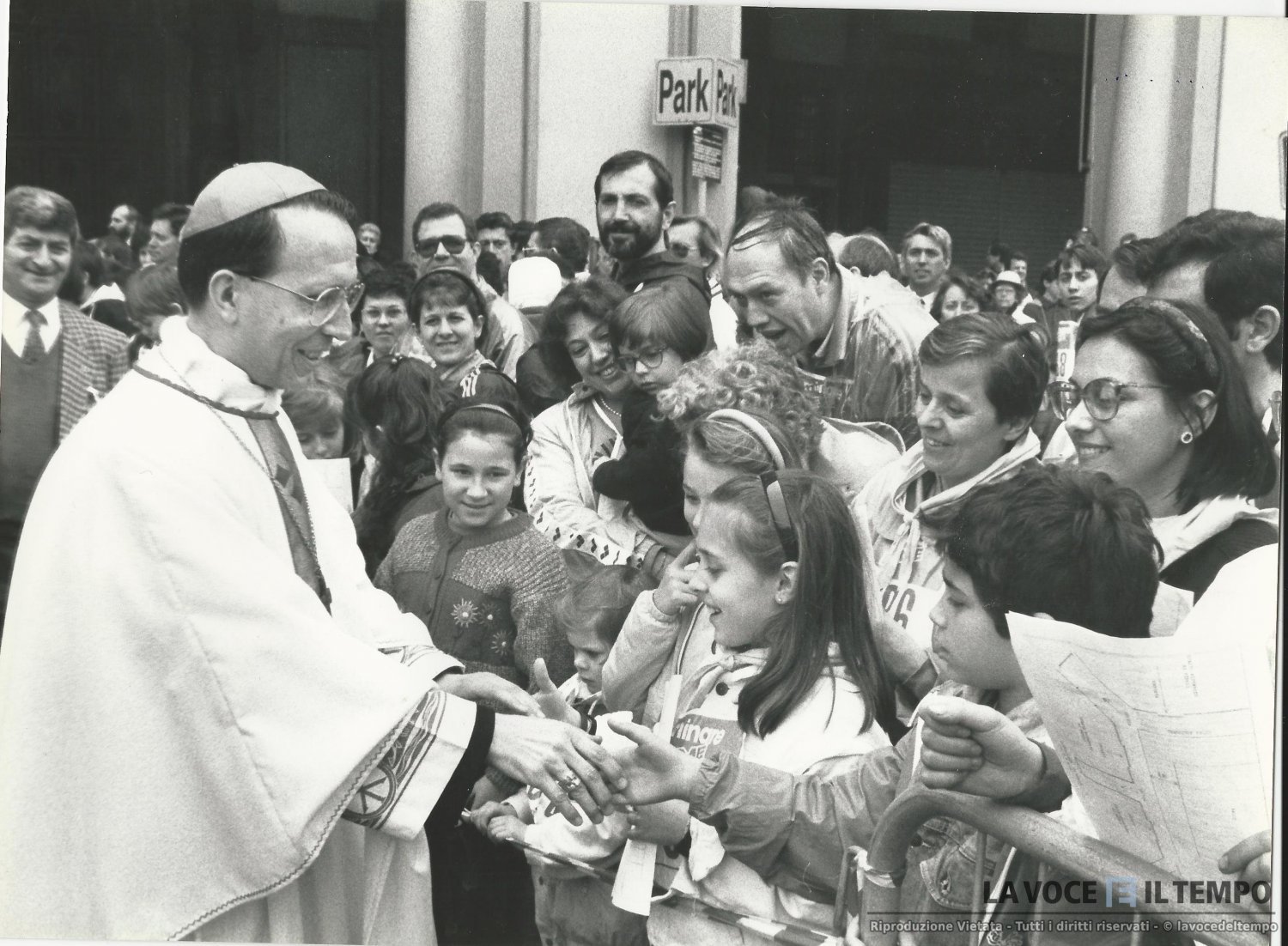 il monsignor micchiardi stringe le mani di alcuni bambini