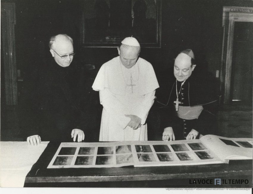 Il Papa guarda delle fotografie con il cardinale Ballestrero e Padre Caviglia