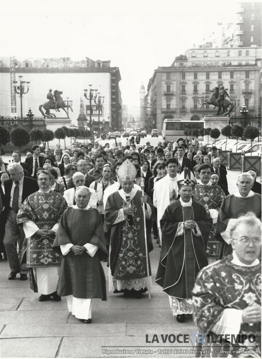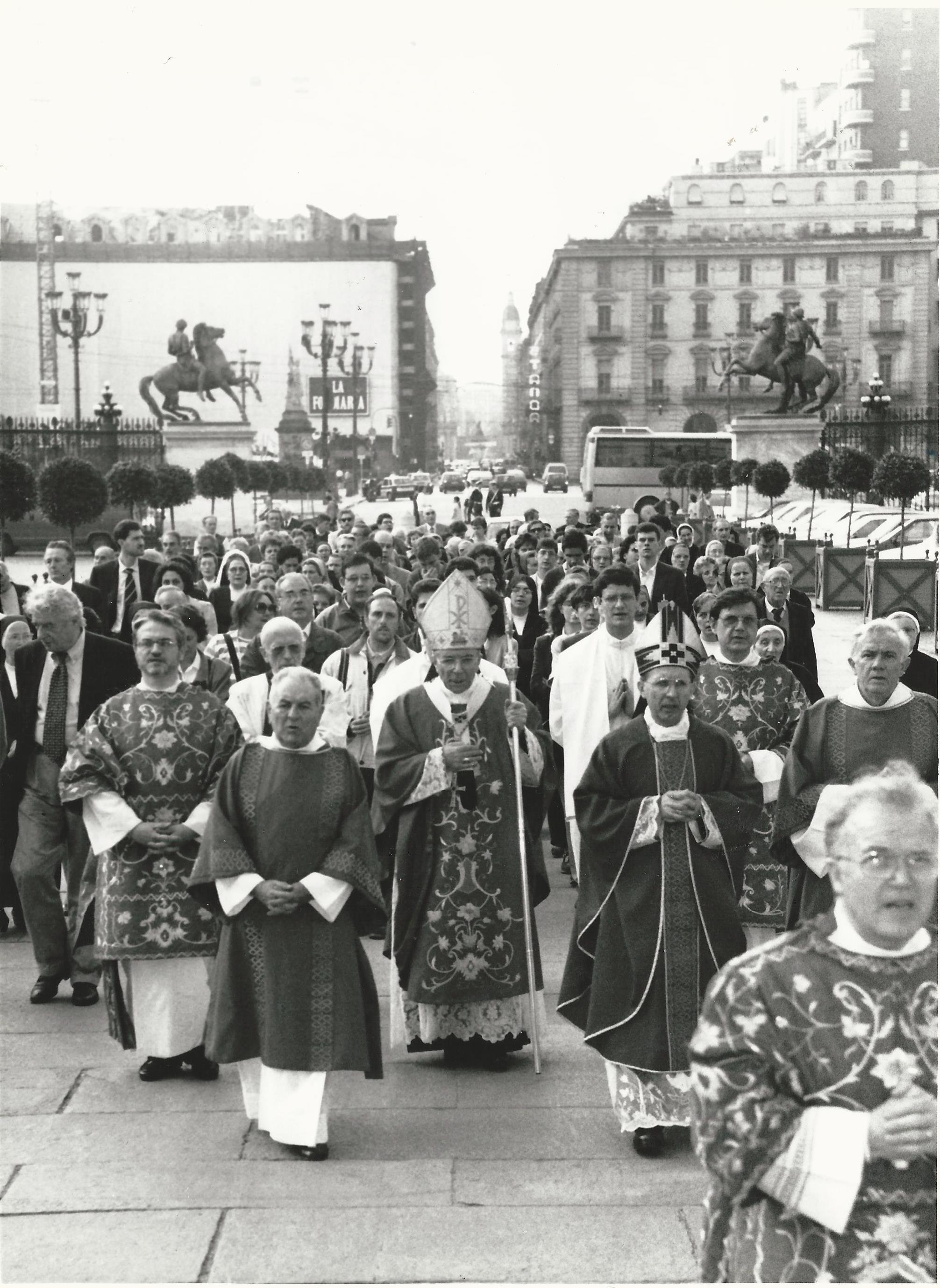 processione sinodale in piazzetta reale con il cardinale giovanni saldarini e piergiorgio micchiardi