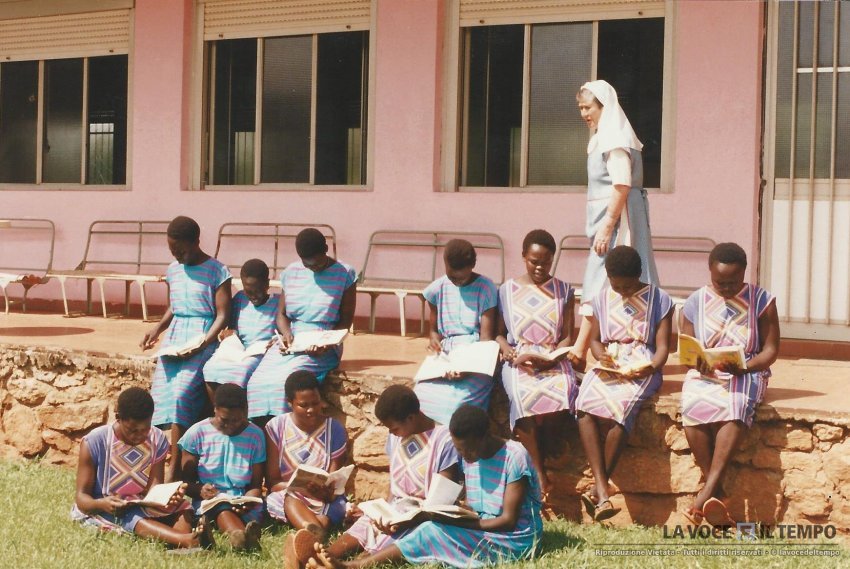 Scuola superiore "Santa monica" a Gulu in Uganda, nella foto ragazze immerse nella lettura all'aperto