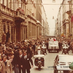 Il papa Giovanni Paolo II saluta la folla in via Ludovico Ariosto, davanti alla Piccola Casa della Divina Provvidenza