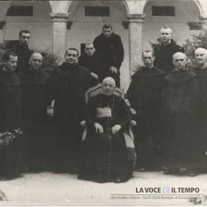 il cardinale maurilio fossati è seduto in mezzo a numerosi frati