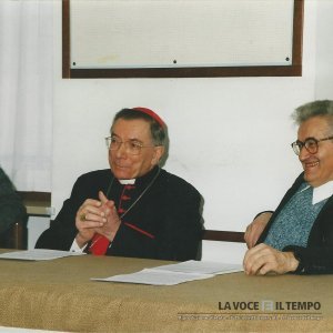 il cardinale saldarini è ad una conferenza con il cardinale Ruini e la professoressa Sindoniricci
