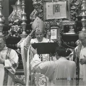 Celebrazione liturgica del Cardinale Saldarini al Sinodo di Torino nel 1996